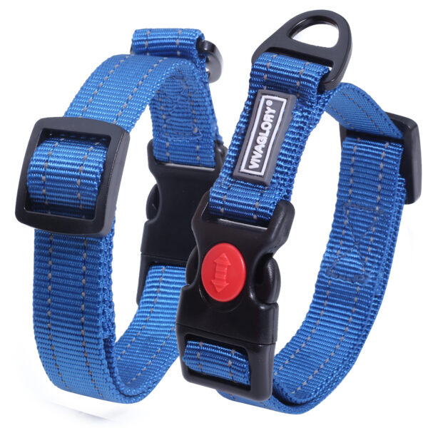 ÉLÉGANCE INTÉRIEURE : Notre collier en nylon pour chien incarne un style classique intemporel. Avec une palette de 12 couleurs vibrantes et cinq tailles différentes à votre disposition, vous pouvez personnaliser l’apparence du collier pour qu’il corresponde parfaitement à votre compagnon à quatre pattes. De plus, une boucle spéciale facilite l’ajout des tags indispensables pour votre chien.
